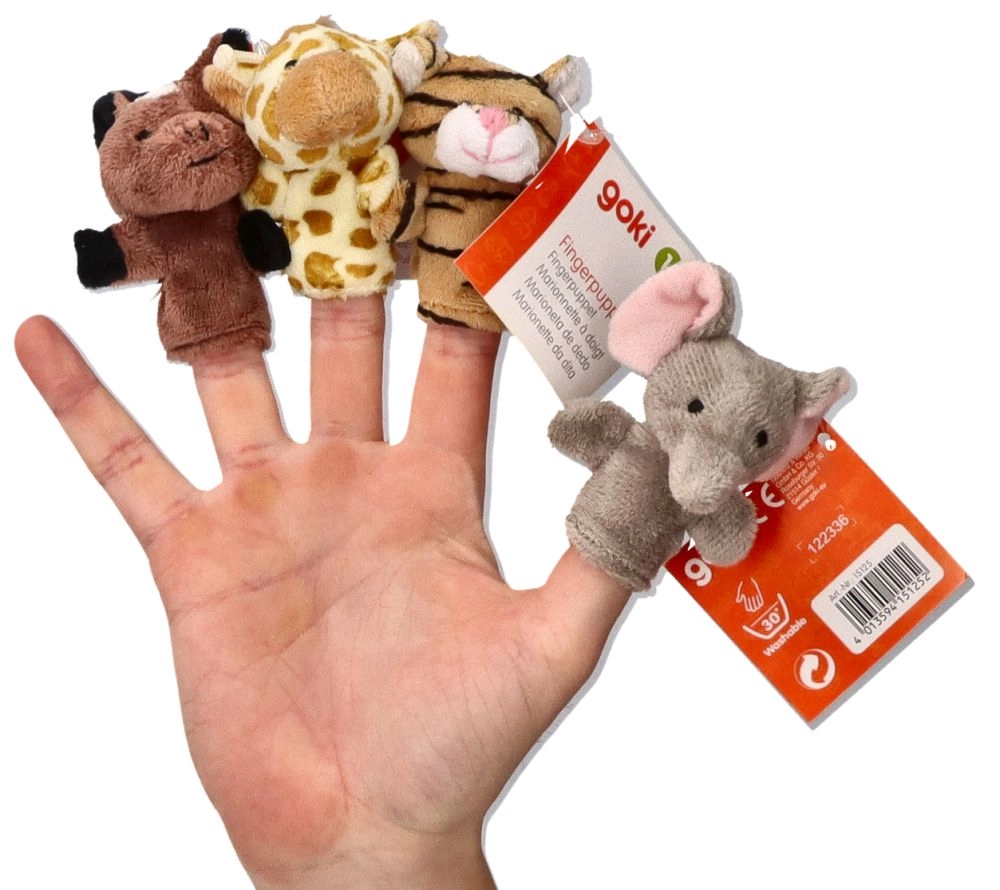Открийте магията на драматичната игра с цветни пръстови кукли – от лъв и зебра до жираф. Мекият текстилен материал е приятен на допир и безопасен за деца, размер 7,5–8,5 см пасва на повечето детски пръсти. Комплектът е чудесен за игра у дома, детски градини и логопедични упражнения.