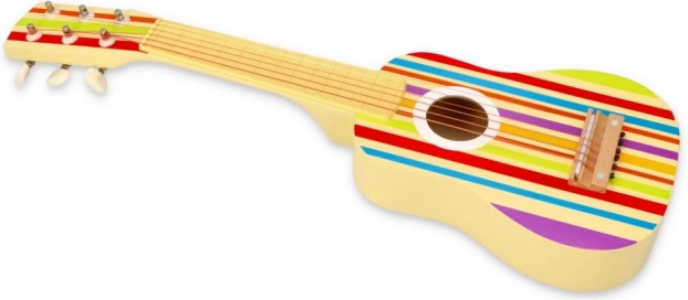 Обогатете детския свят на музиката с тази цветна китара, която носи радост и творчество. Китарата е проектирана за лесно свирене, подпомага развитието на фината моторика и музикалното усещане. Изработена е от висококачествено дърво с безопасно покритие.