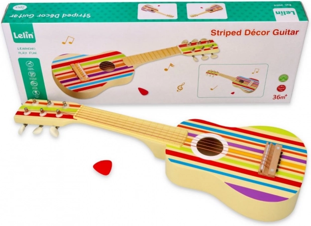 Китарата впечатлява с пъстрия си райетен десен, който ще очарова всяко дете.