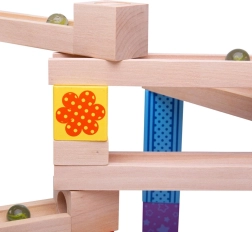 Пистата развива пространствената ориентация, фината моторика и логическото мислене. Децата ще бъдат запленени от начина, по който топчетата плавно се спускат по трасето, което сами са създали.