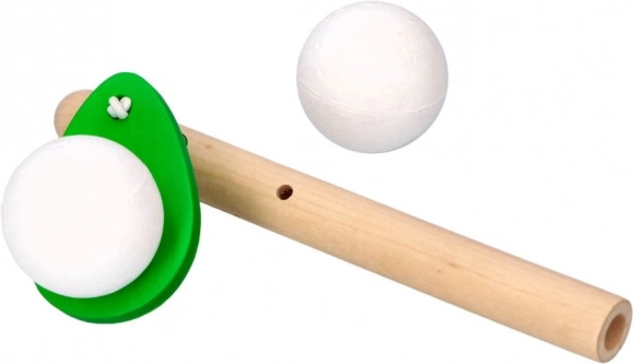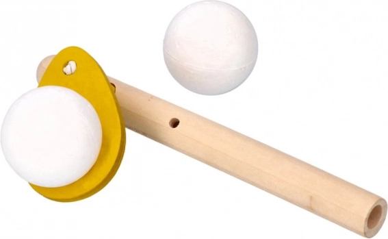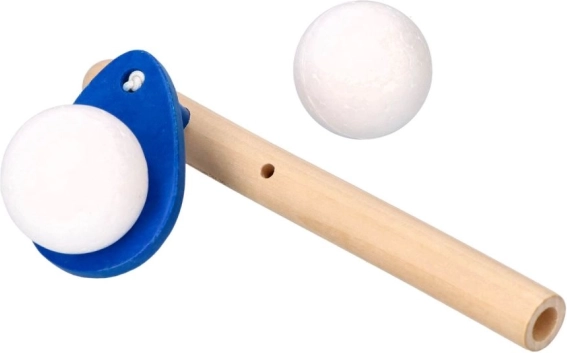 Забавна и лесна дихателна игра от GOKI, при която с издухване в дървена тръбичка държите левитиращото топче възможно най-дълго във въздуха. Отличен помощник за тренировка на дишането, логопедична полза и координация. Размери на свирката 15 × 5 cm, топче Ø 3 cm. Доставя се в микс от цветове.