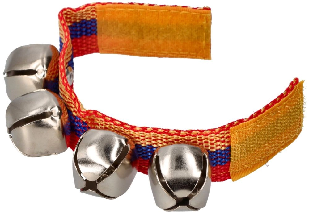 Лентата със звънчета е прост и забавен перкусионен инструмент за деца. Цветният текстилен ремък с велкро стои сигурно на китката или глезена, а металните звънчета създават отчетлив звънлив звук при всяко движение. Отличен избор за домашна игра, детски градини и музikalни занимания.