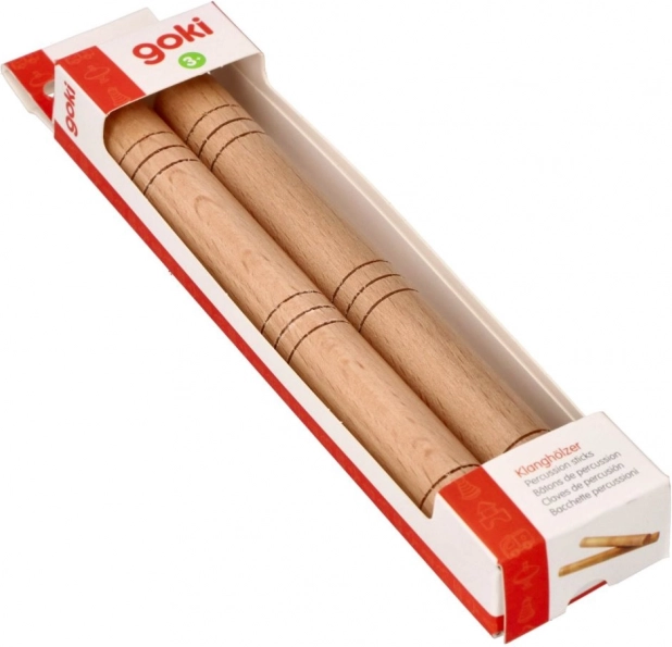 Озвучените дървени палки GOKI са идеални за колективно музикално обучение в детски градини и училища. Изработени са от екологично добита дървесина, което гарантира устойчив произход на ресурсите. Дължината на палките е 19 cm, а диаметърът 1,9 cm.