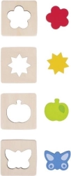 Осезателната игра Познай формите в рамка е създадена от висококачествено естествено дърво. Съдържа 16 рамки с размери 5,9 x 5,9 cm и 16 цветни изрязани форми, които стимулират осезанието и сетивните възприятия на децата. Чрез лесно подреждане и търсене на формите в торбичката се постига забавно учене. Играта може да се играе по различни начини, включително търсене на форми само чрез допир, което добавя към нейното очарование.