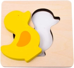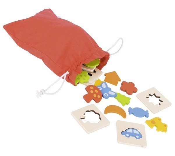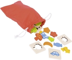 Играта помага за развитие на фините двигателни умения на децата чрез осезателно разпознаване на форми.