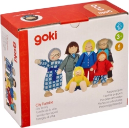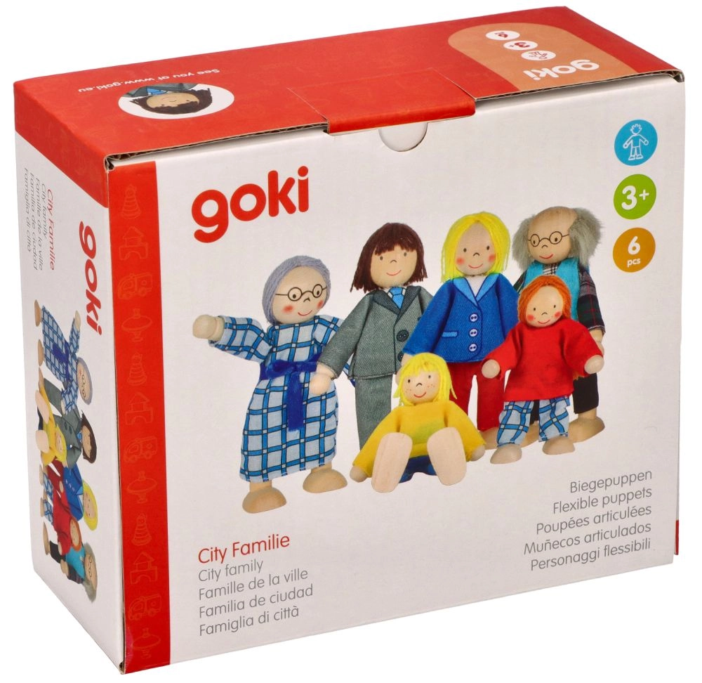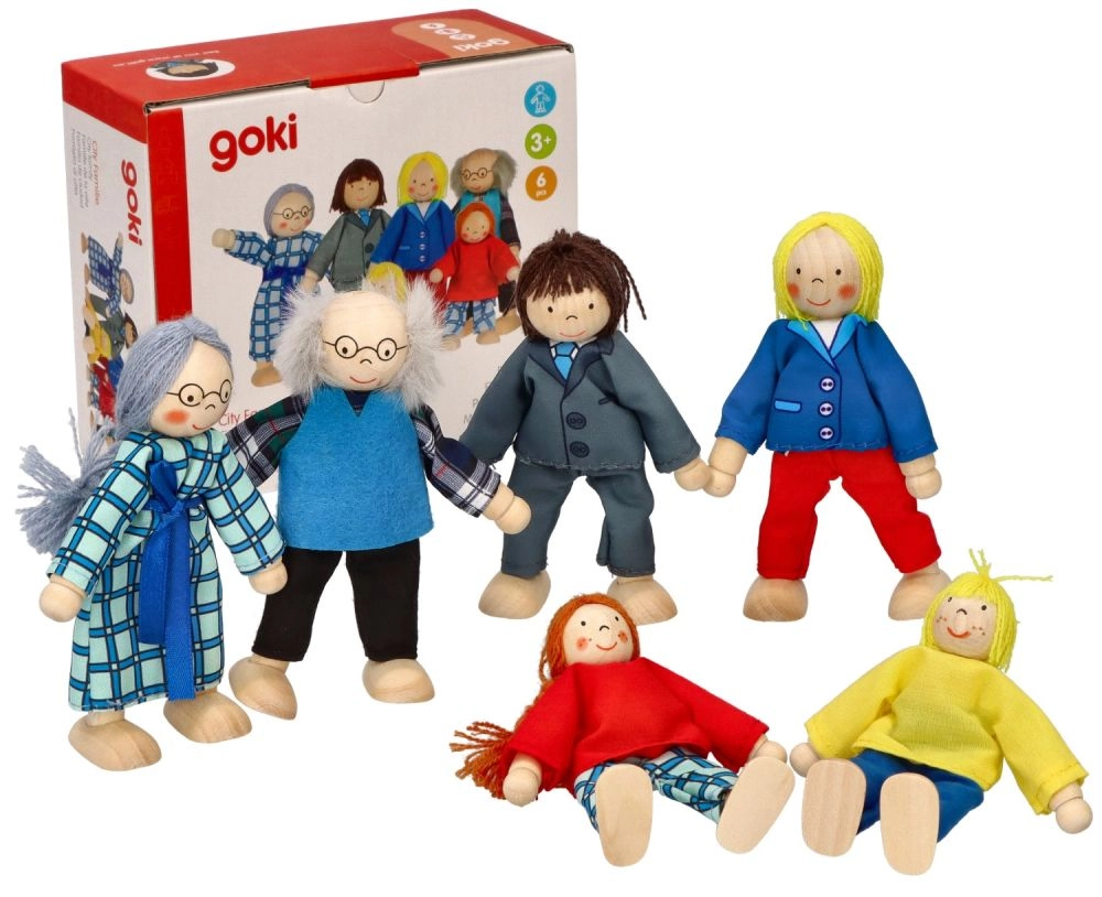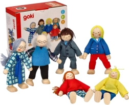 Комплектът е съвместим с всички кукленски къщички на марката GOKI. Естествените материали, внимателният подбор на дървесина и безопасните бои подчертават дългия живот и ценностите на устойчивостта. Височината на куклите 9–11 cm пасва на по-малките детски ръце и улеснява лесната манипулация.