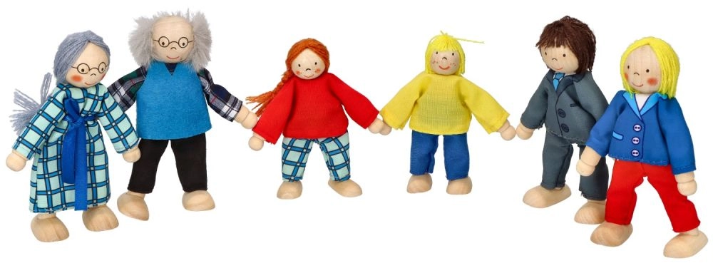 Открийте магията на семейната игра с класическия комплект кукли Goki. Шестте прецизно изработени фигурки – баба, дядо, мама, татко, дъщеря и син – подпомагат развитието на въображението, комуникационните умения и социалното учене. Благодарение на огъваемите крайници лесно заемат различни пози и чудесно се приспособяват към всяка сцена в детската къщичка.