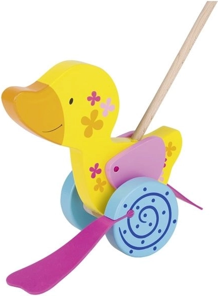 Тази дървена возеща се играчка от масивно дърво е проектирана така, че да привлича децата не само с външния си вид, но и с движението си. Патенцето се полюшва, маха с крилца, а крачетата му весело пляскат по земята, докато се движи. Това не само подпомага детската моторика, но и усета им за равновесие и носи радост от движението.