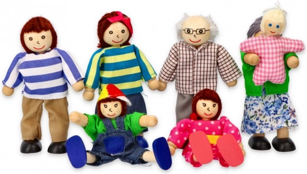 Това детайлно изработено семейство е идеалното допълнение към всяка къща за кукли. Фигурките от масивно дърво в цветни текстили са приятни на допир, безопасни и издръжливи за ежедневна игра. Благодарение на различните размери (родители, деца, бебе) децата лесно създават свои истории от семейния живот.