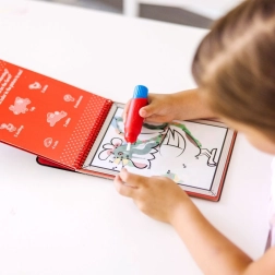 Тази книжка позволява на децата да оцветяват с вода без замърсяване. Когато водата изсъхне, страниците са готови за нови рисунки.