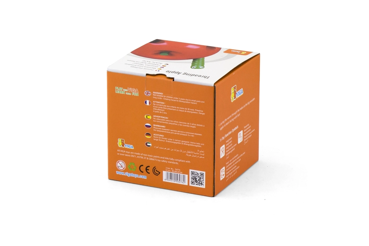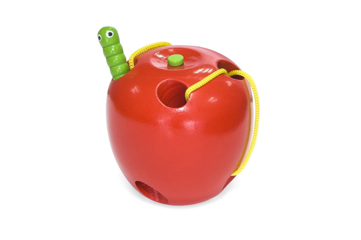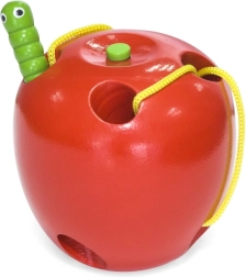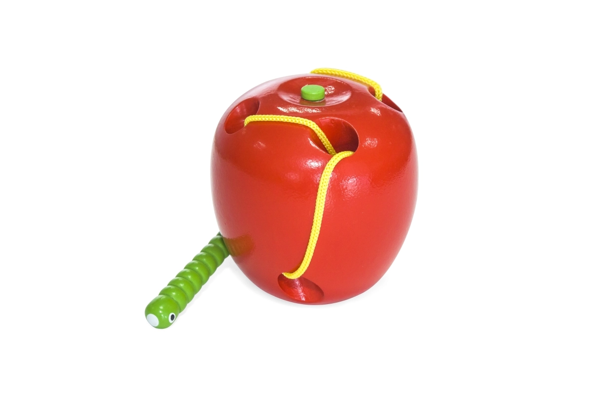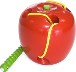 Ябълката е изработена от букова дървесина и е лакирана с безопасни, нетоксични бои в живи нюанси, които мотивират децата да играят отново и отново. Идеална като Монтесори помощник за развитие на фината моторика и концентрацията при деца от 3 години.
