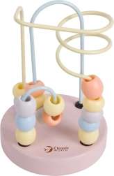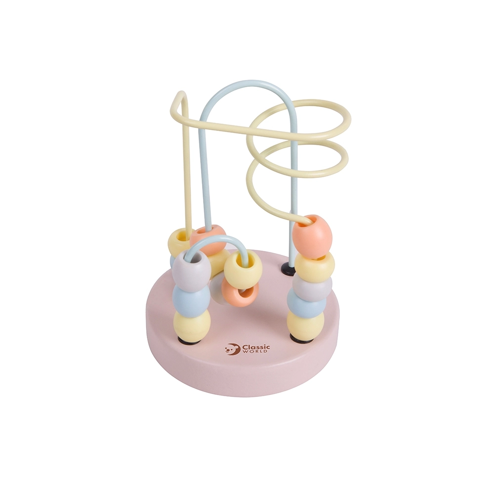 По металните пръти има красиви дървени мъниста, които децата могат свободно да преместват, като така тренират прецизността на движенията на пръстите и ръцете.