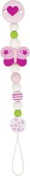 Практичната щипка за биберон Goki с мотив пеперуда държи биберона винаги под ръка и чист. Благодарение на компактните размери и лесното закрепване е идеална за ежедневна употреба. Сигурно закрепване, сладък дизайн и удобство в движение за бебето и родителите.