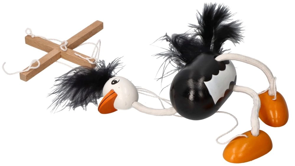 Потопете се в свят на фантазия и приключения с тази прекрасна дървена марионетка щраус. Този ръчно изработен щраус предлага лекота и подвижност благодарение на висококачествената си конструкция и управляващите въженца. Перфектно подходяща за театрални представления, ролеви игри или като декоративен елемент в детската стая.