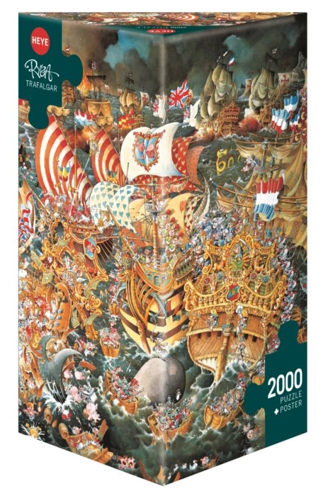 Пъзел Битката при Трафалгар от известния карикатурист Михаел Риба ще ви пренесе в исторически моменти с прекрасна графика. Опаковката съдържа 2000 части и необичайна тристранна кутия с плакат като образец за подреждане.