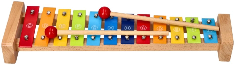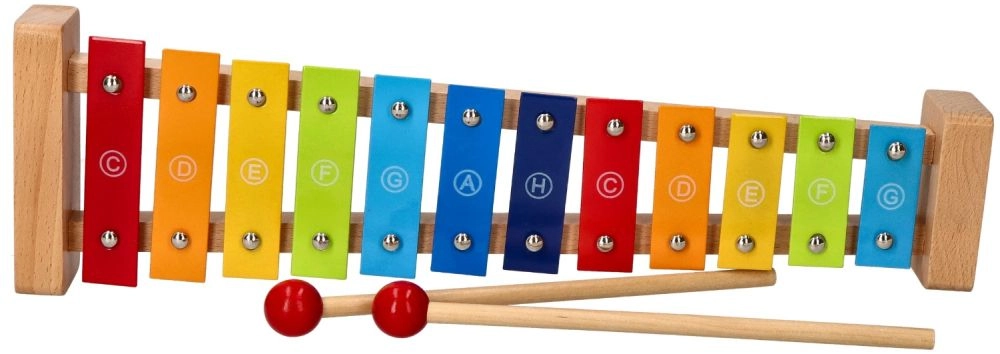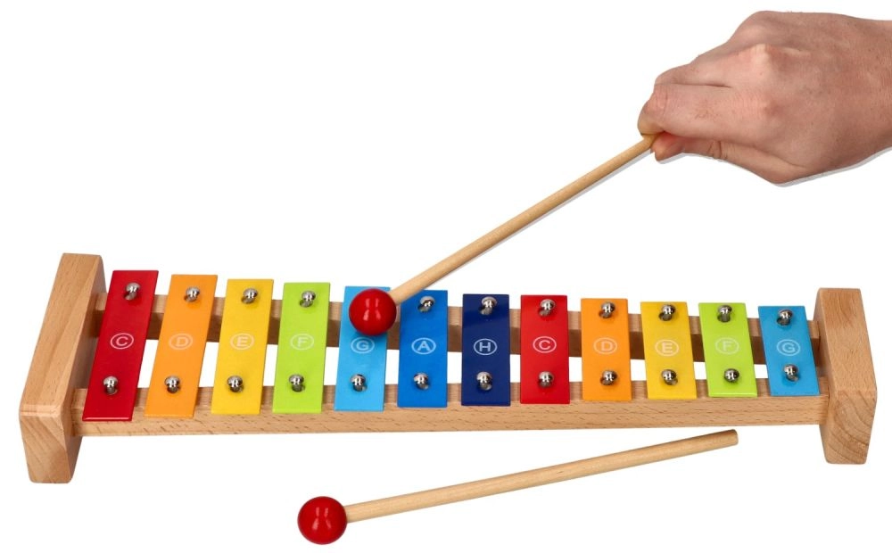 Здравата дървена рамка и 12-те метални клавиша осигуряват приятен звук и дълъг живот на играчката.
