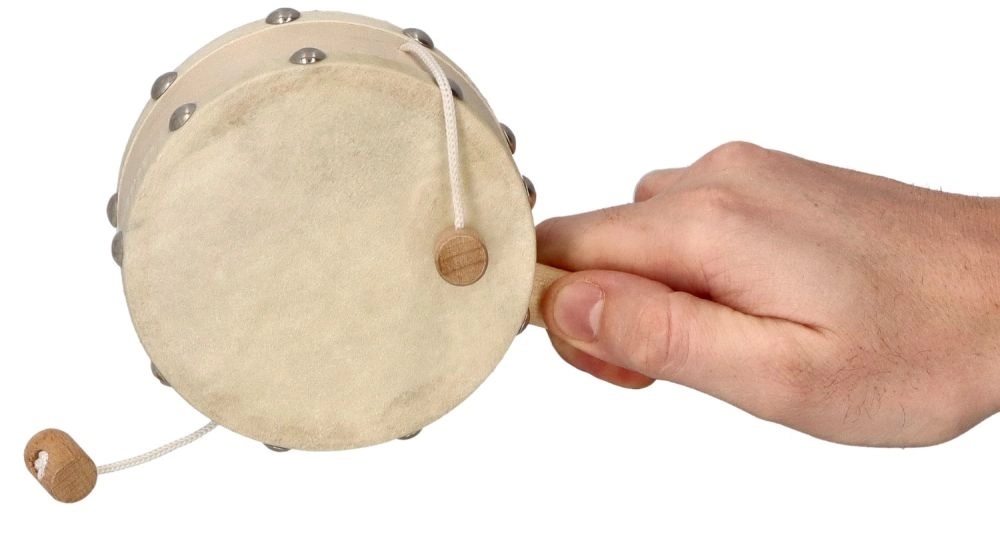 Представяме естествен тамбурин с мъниста, идеален за малки музиканти от тригодишна възраст. Благодарение на дървената дръжка и кожената ударна повърхност този тамбурин е не само естетичен, но и функционален.