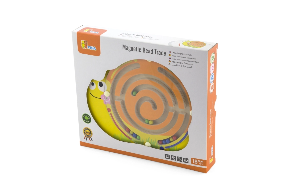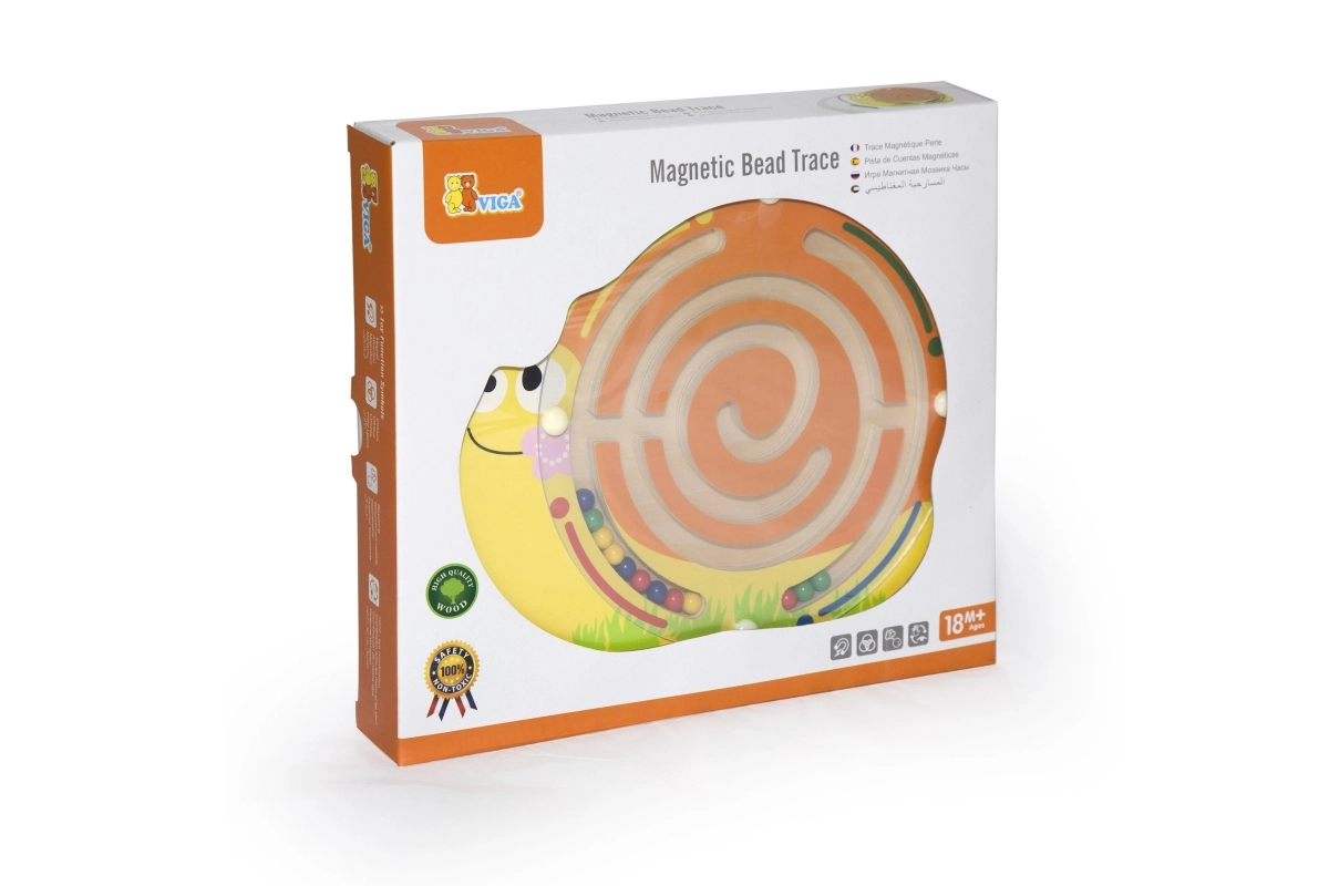 Представяме креативен магнитен лабиринт във форма на охлюв, който приканва децата на приключенско пътешествие, изпълнено със забавление и учене. Вътре в черупката на охлюва има лабиринт с топчета, които могат да се насочват с магнитна пръчица или чрез завъртане на играчката. Тази активност изисква концентрация, прецизност и логическо мислене — ключови умения за развитието на децата.