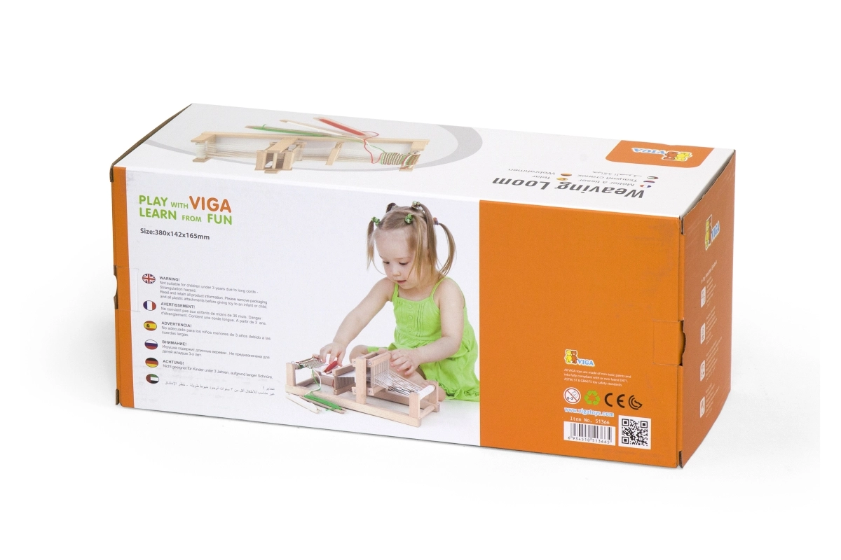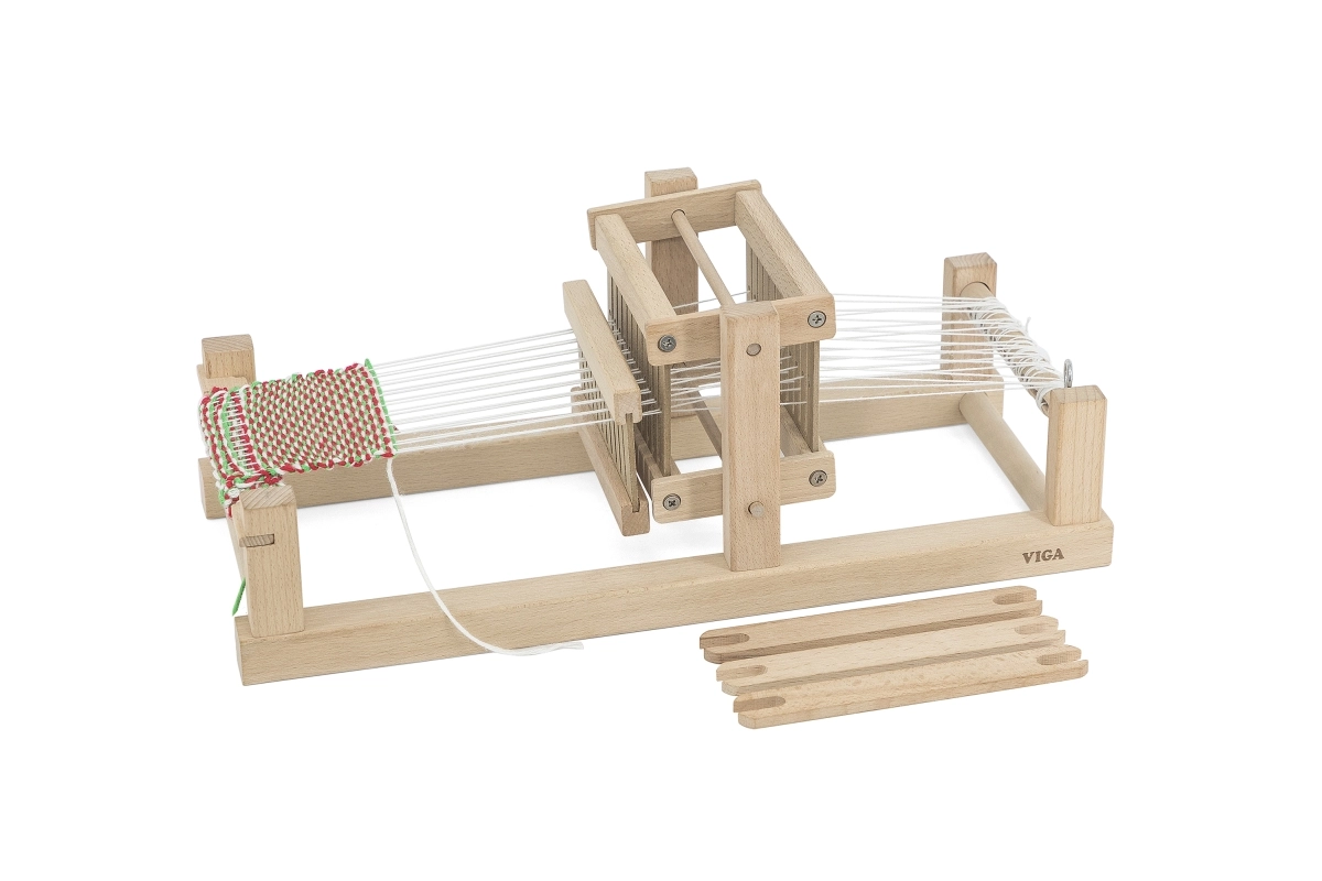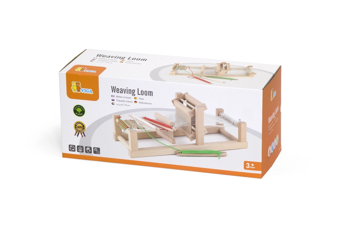 Дървеният стан от VIGA е вечна креативна играчка, която по забавен начин запознава децата с основите на тъкането. Благодарение на здравата изработка от висококачествено дърво със сертификат FSC, станът е стабилен, издръжлив и приятен на допир. Децата могат да създават малки килимчета, подложки или декорации и по игрив начин да развиват сръчността си.