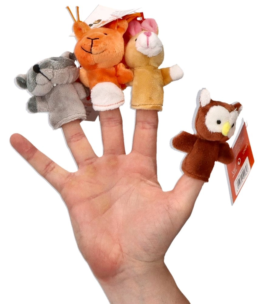 Комплектът Plush Finger Puppets Горски животни съдържа осем сладки животни, включително сова, жаба, заек, мечка, лисица, катерица и таралеж. Всяка кукла е проектирана за въображаема игра и се поставя лесно на пръста, което я прави идеален помощник при разказване на истории.