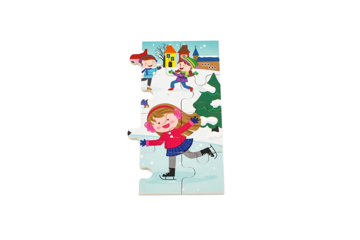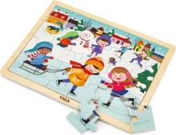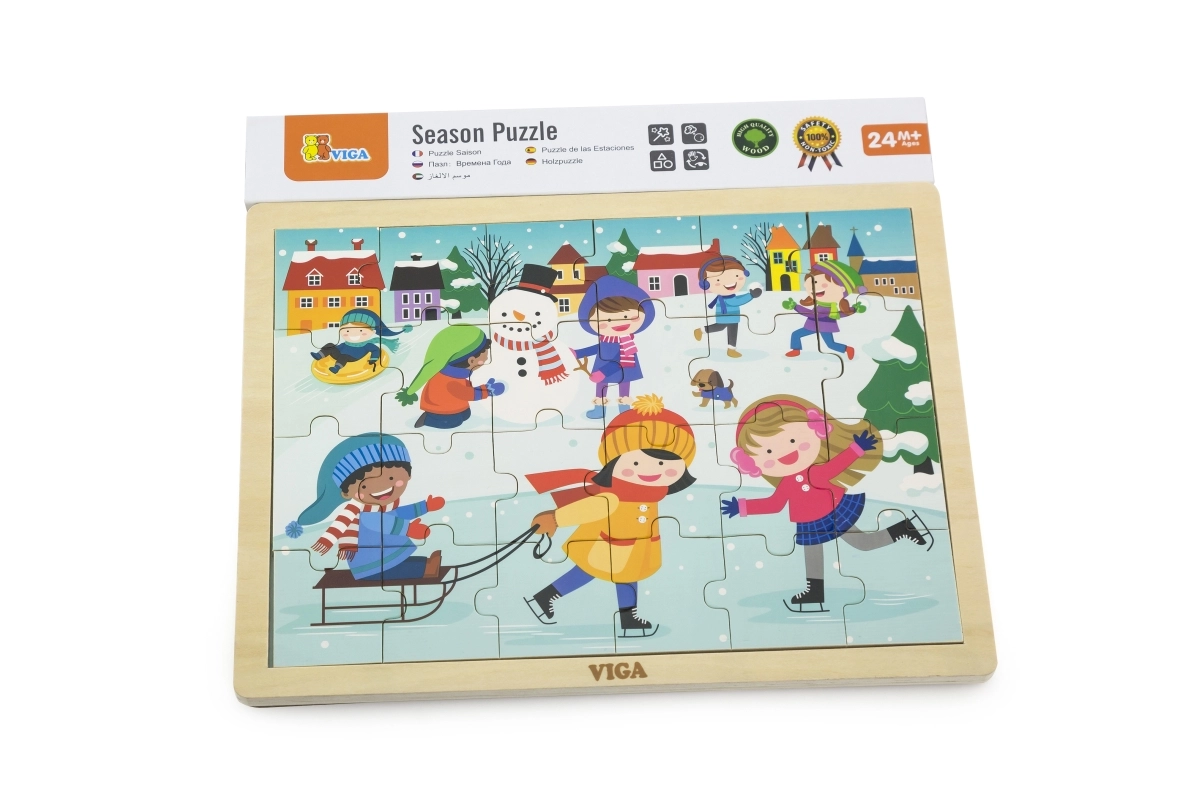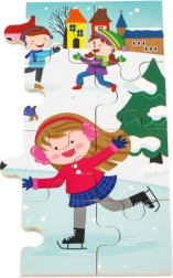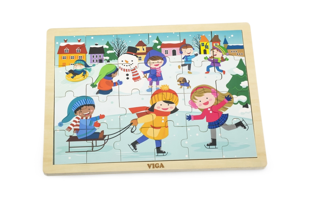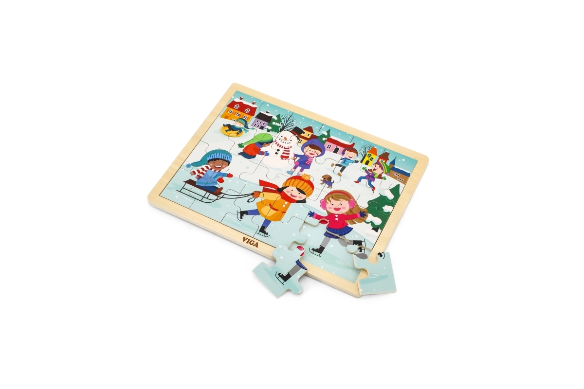 Този дървен пъзел със зимна картинка е чудесен избор за деца от 24 месеца. Размерът на отделните части е съобразен с детските ръчички, а здравата конструкция осигурява дълъг живот. Благодарение на 24-те части децата тренират концентрацията и изпитват радост от завършената картина.