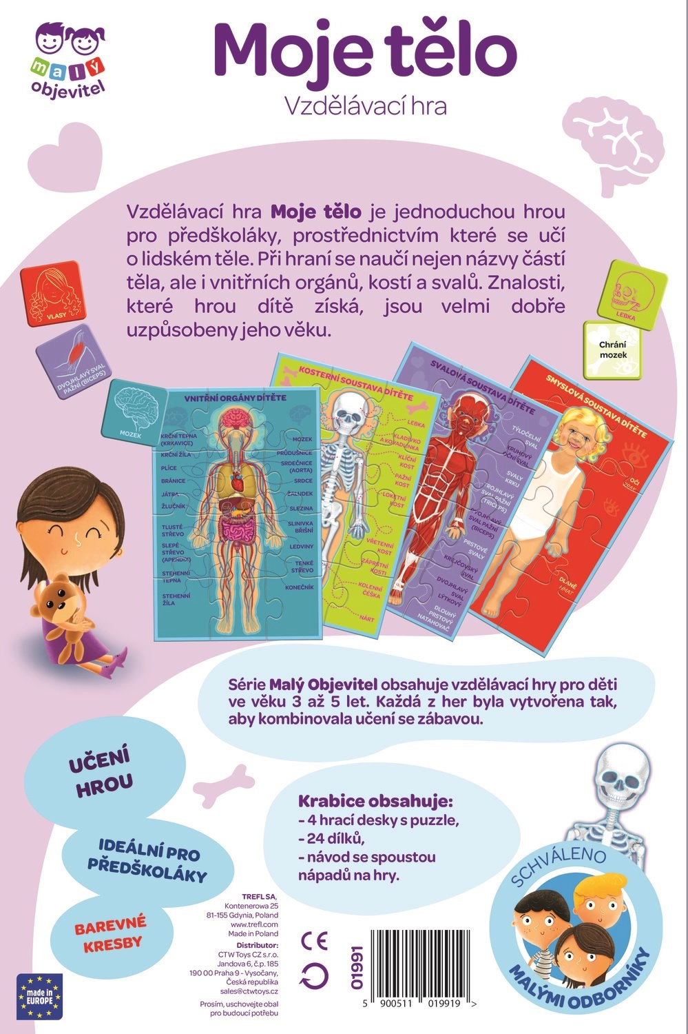 Тази игра е идеална за деца над три години, които имат желание да откриват тайните на човешкото тяло. Съдържа: