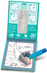 Водната книжка за рисуване е създадена за повтарящо се забавление. Достатъчно е да напълните писеца с вода и да гледате как картинките оживяват при допир с водата. След изсъхване децата могат да започнат отново.