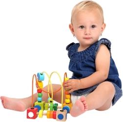 Движението на мънистата по жиците помага на децата да подобрят координацията между очите и ръцете.