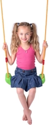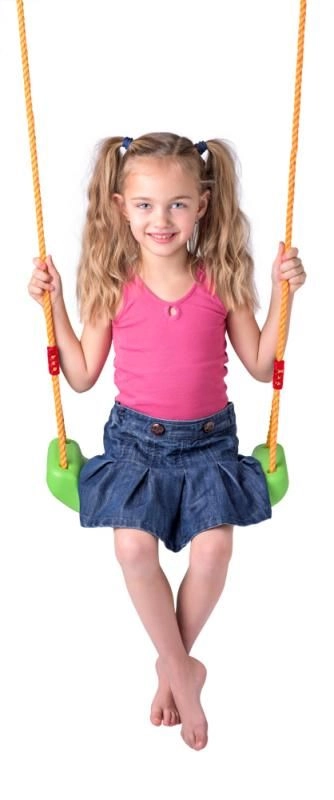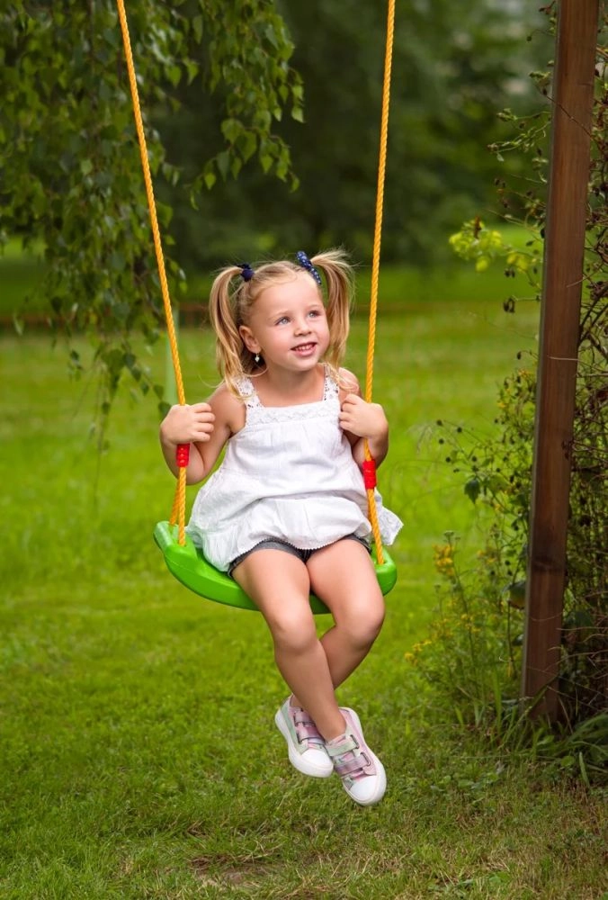 Благодарение на максимална товароносимост 80 кг седалката е идеална за деца от 6 години и издържа на интензивна ежедневна употреба. Металните халки в краищата на въжетата осигуряват бърз монтаж към повечето стандартни куки и конструкции.