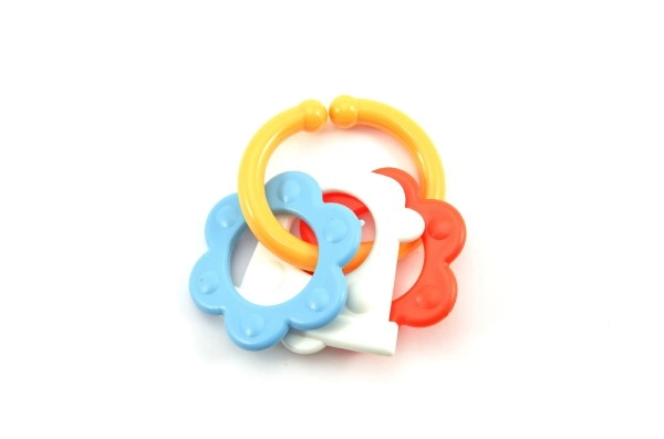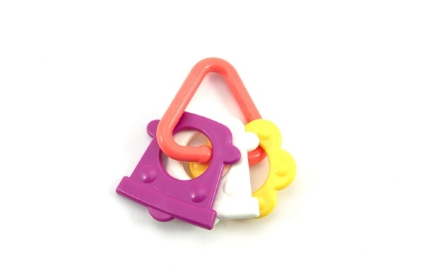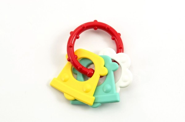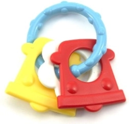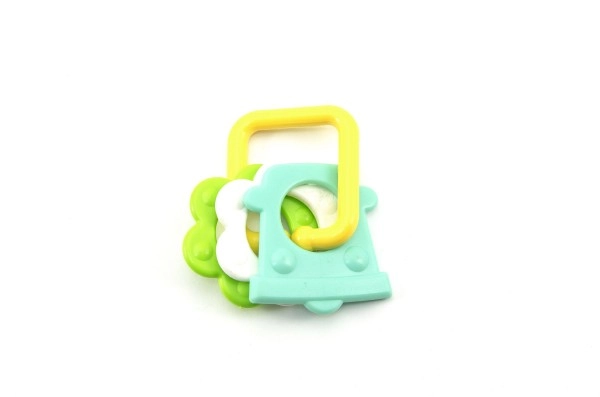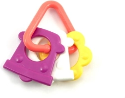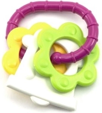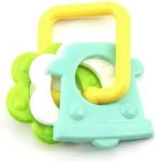 Нашата цветна пластмасова гризалка е проектирана за малки ръчички, които лесно могат да хванат всяка от нейните форми. Благодарение на разнообразието си вашето бебе ще стимулира както сетивата, така и венците.