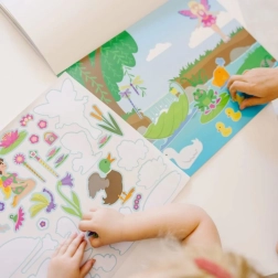 Стикерите включват пъстри илюстрации на феи и вълшебни пейзажи, позволявайки на децата да създават свои собствени истории и сцени. Този продукт е и чудесен начин да се учат на търпение и прецизност, докато подреждат всяка сцена. Подходящо за деца над 3 години.