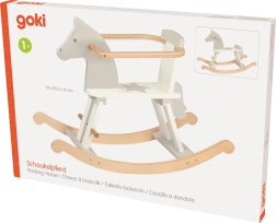 Люлеещият се кон Goki се отличава с модерна и цветна визия, вдъхновена от скандинавския стил. Благодарение на качествената дървесина и прецизната изработка осигурява безопасно и удобно возене за най-малките деца. Предпазната рамка може лесно да се свали, когато детето порасне и стига с краката си до пода.