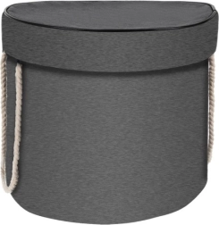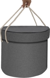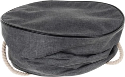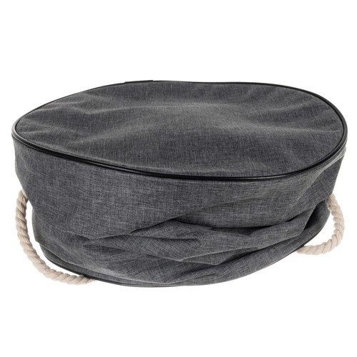 Благодарение на удобните въжени дръжки кошът се пренася лесно от стая в стая, на терасата или на пикник. Неутралният сив кош и жълто‑черната подложка пасват на всеки интериор.