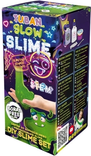 Комплектът Tuban Super Slime предлага уникално изживяване при изработката на слуз, която свети в тъмното. Достатъчно е просто да следвате инструкциите и ще създадете собствена лилава слуз, която изглежда страхотно!