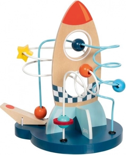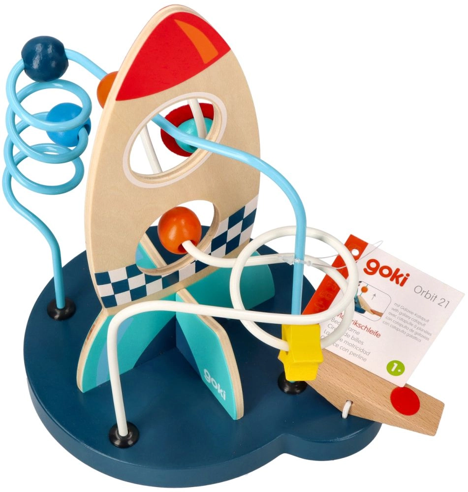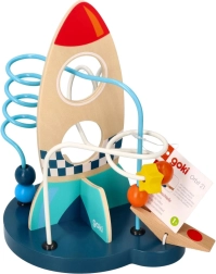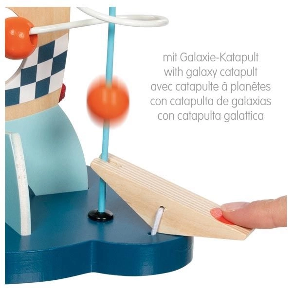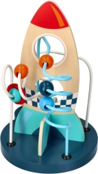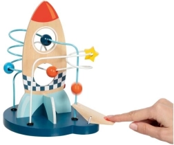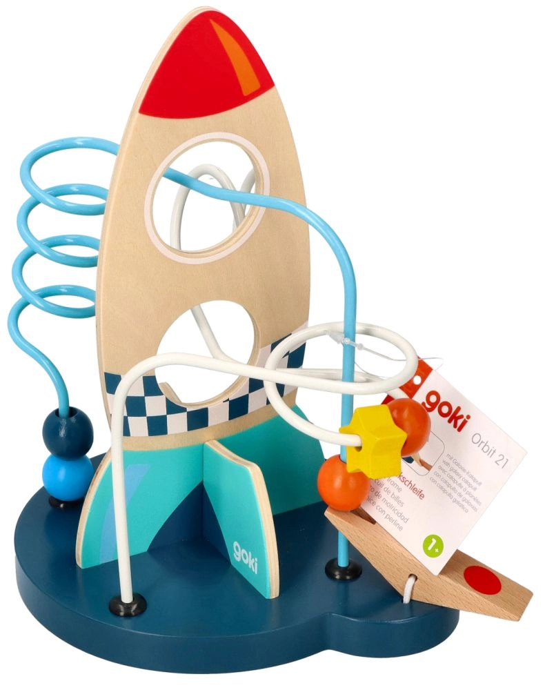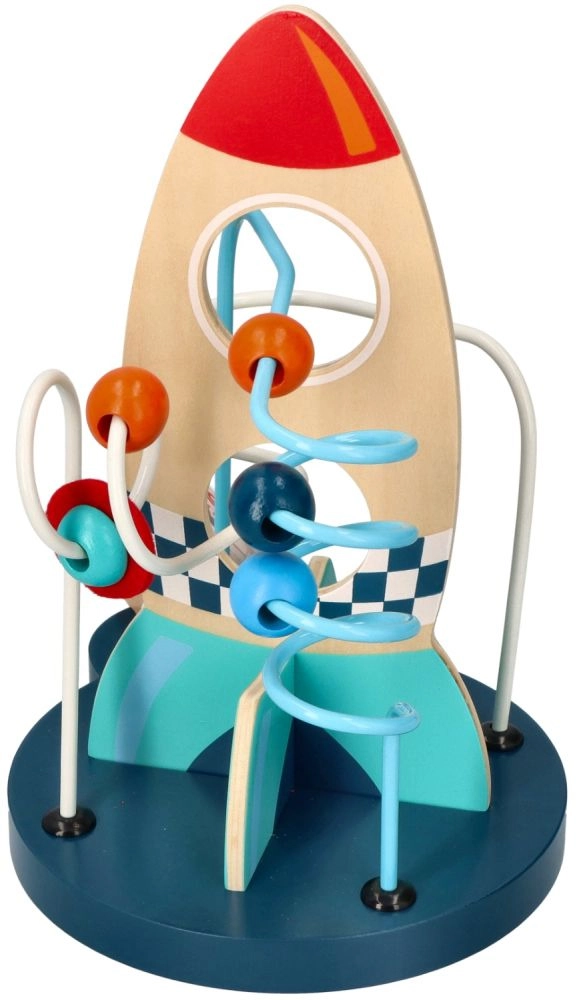 Този издръжлив дървен лабиринт впечатлява с ярки цветове и добре обмислен дизайн, който стимулира любопитството и търпението. Децата придвижват мънистата по металните пътеки, тренират захвата и се учат да различават цветове и форми.