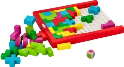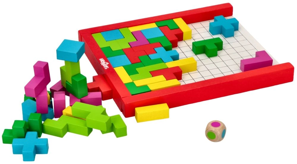 Открийте чара на дървения пъзел в стил Tetris, съставен от пъстроцветни геометрични елементи. Играта е създадена да развива пространственото въображение и креативността при деца над 3 години. Всеки елемент е изработен от качествено дърво и е проектиран да пасва идеално в решетката.
