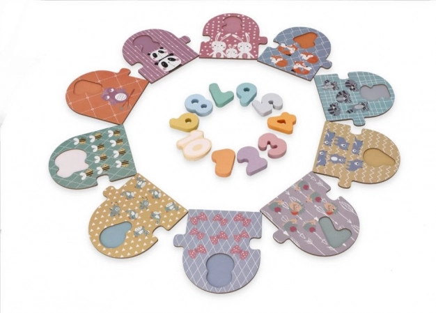 Открийте игривия път към първата математика с този дървен пъзел за най-малките. Комплектът съдържа 10 табелки със животни и 10 изваждащи се цифри 1–10, които учат децата да броят, да разпознават форми и цветове и да тренират фината моторика. Благодарение на философията Монтесори насърчава самостоятелното откриване, мултисензорното учене и координацията око–ръка. Идеален подарък за деца от 12 месеца.