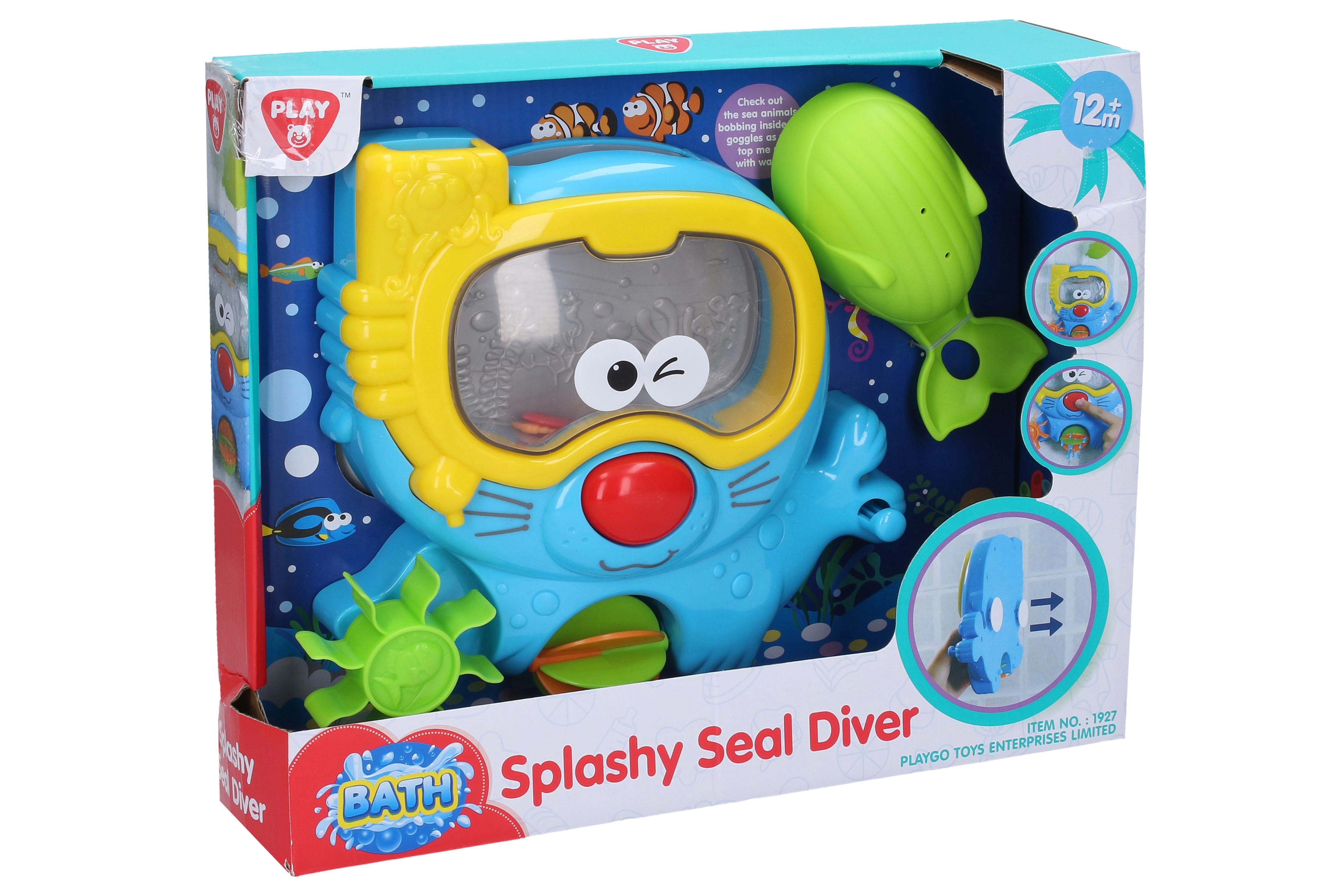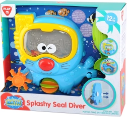 Аквариум с водно колело превръща къпането на вашето дете във вълнуващо преживяване. Използвайте лъжичката, за да налеете вода в очилата на тюлена и наблюдавайте как рибките в аквариума оживяват в танц. Натиснете носа на тюлена и се насладете на водно шоу с цветни колела.