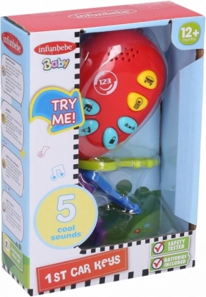Интерактивни ключове за деца с звукови и светлинни ефекти от марката Infunbebe, които наподобяват истински автомобилни ключове и осигуряват часове забавление.