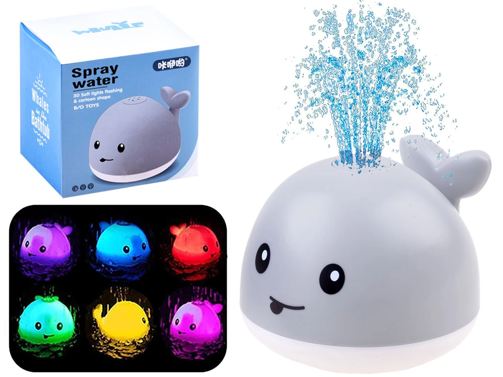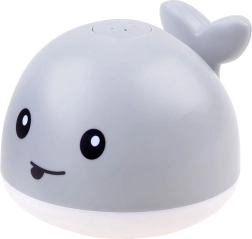 Тази играчка за баня във формата на усмихнат кит превръща рутинната хигиена в радостно забавление. При контакт с вода се включва автоматично, завърта нежна водна фонтанка и засиява със сменящи се цветове, които очароват децата.
