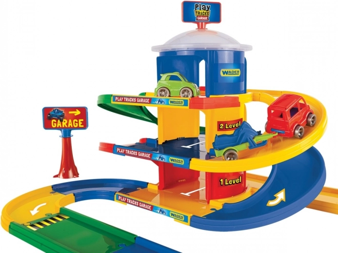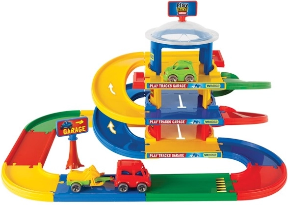 Този триетажен гараж Play Tracks е идеален за малки любители на колите. От устойчиви, безопасни и цветни части се сглобява многоетажна пътна система с дълги спускателни рампи, която предлага безброй игрови сценарии. Вариативните елементи позволяват изграждане на различни форми на трасета с дължина до 4,6 m, така че децата да се наслаждават на бързи спускания и паркови предизвикателства.