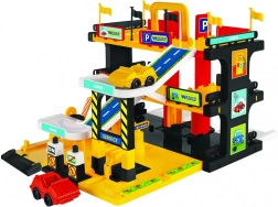 Сервизният гараж WADER ще зарадва малките шофьори и феновете на колите. Предлага 3 етажа, пълни с действие, с асансьор, рампи, автомивка, автосервиз и 2 колички. Цветна, устойчива конструкция от висококачествен пластмасов материал, 76 стикера за персонализиране и лесен монтаж. Идеален от 3 години.