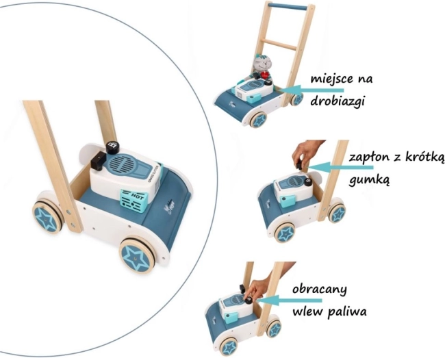 Дървената косачка със звук е идеален избор за всички малки градинари. Тази играчка е проектирана да помага на децата да подобрят координацията и равновесието си. Въпреки че подпомага ходенето, тя не е предназначена като традиционна проходилка за изучаване на първите стъпки.