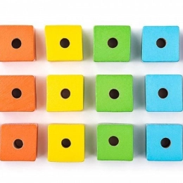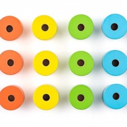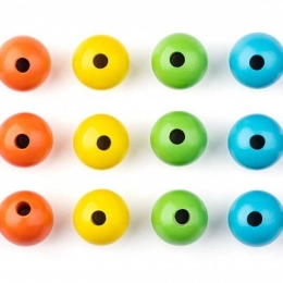 Големите дървени мъниста с отвор за лесно промушване са чудесен помощник у дома и в детската градина. Благодарение на ярките цветове и приятния материал децата с желание тренират сортиране, подреждане и нанизване, като ненатрапчиво упражняват умения, необходими за писане и концентрация.