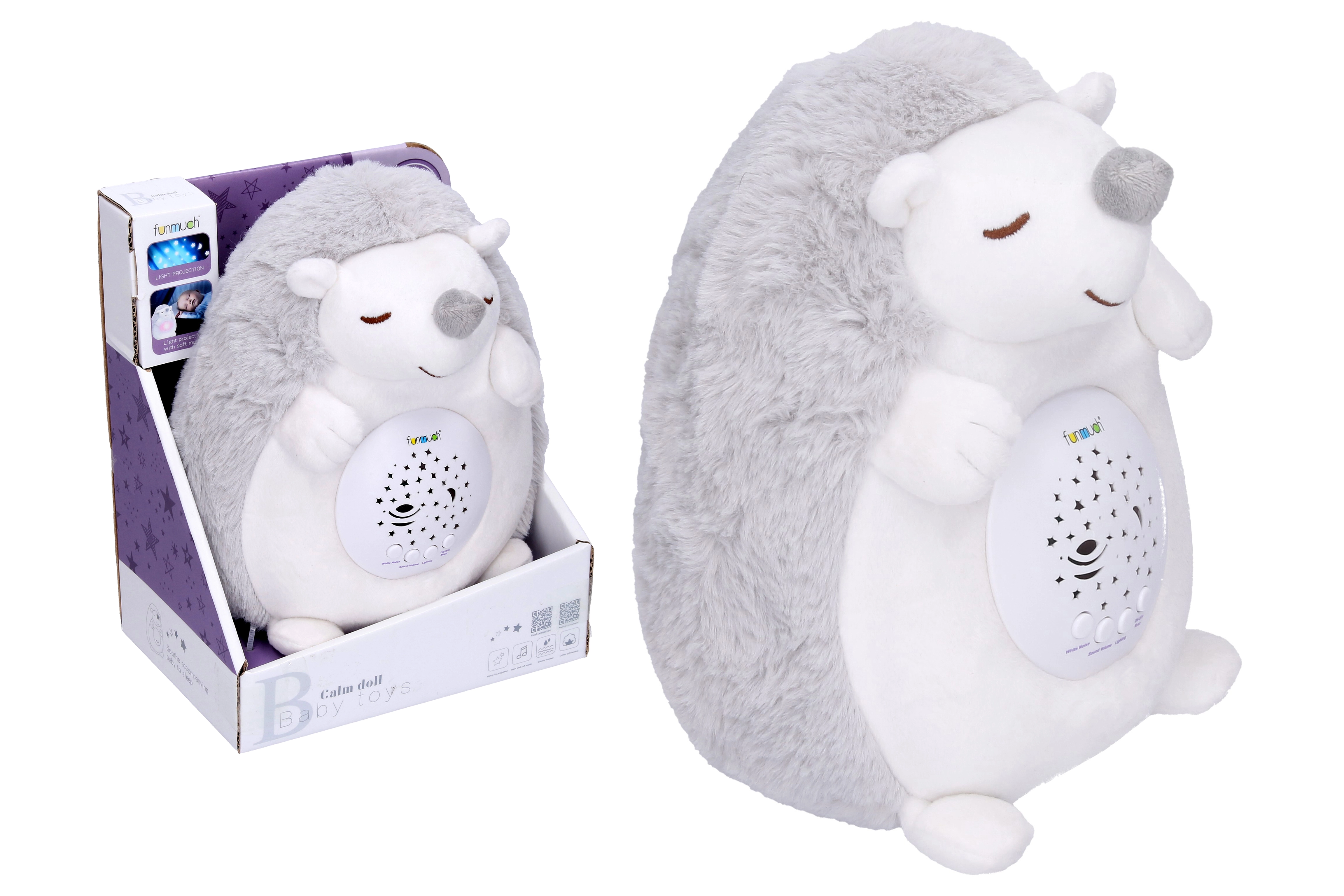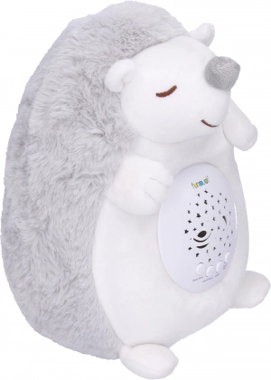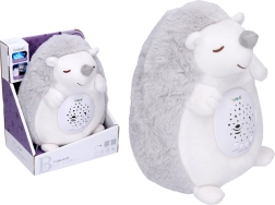 Очарователният пухкав таралеж успокоява вашето бебе с нежна мелодия или шум и благодарение на проектора на коремчето създава по стените и тавана нощно небе, пълно със звезди и цветове. Идеален от раждането за спокойно заспиване и създаване на приятна атмосфера.