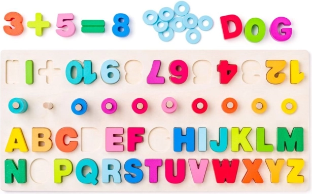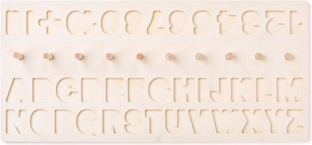 Открийте свят на образование, в който забавлението върви ръка за ръка с полезността. Дървената образователна дъска предлага на децата не само запознаване с буквите и числата, но и упражняване на основни математически операции. Дъската е оборудвана със свалящи се елементи с числа, математически символи и цялата азбука в ярки цветове. Десет дървени колчета с цветни пръстени позволяват визуално и тактилно обучение.