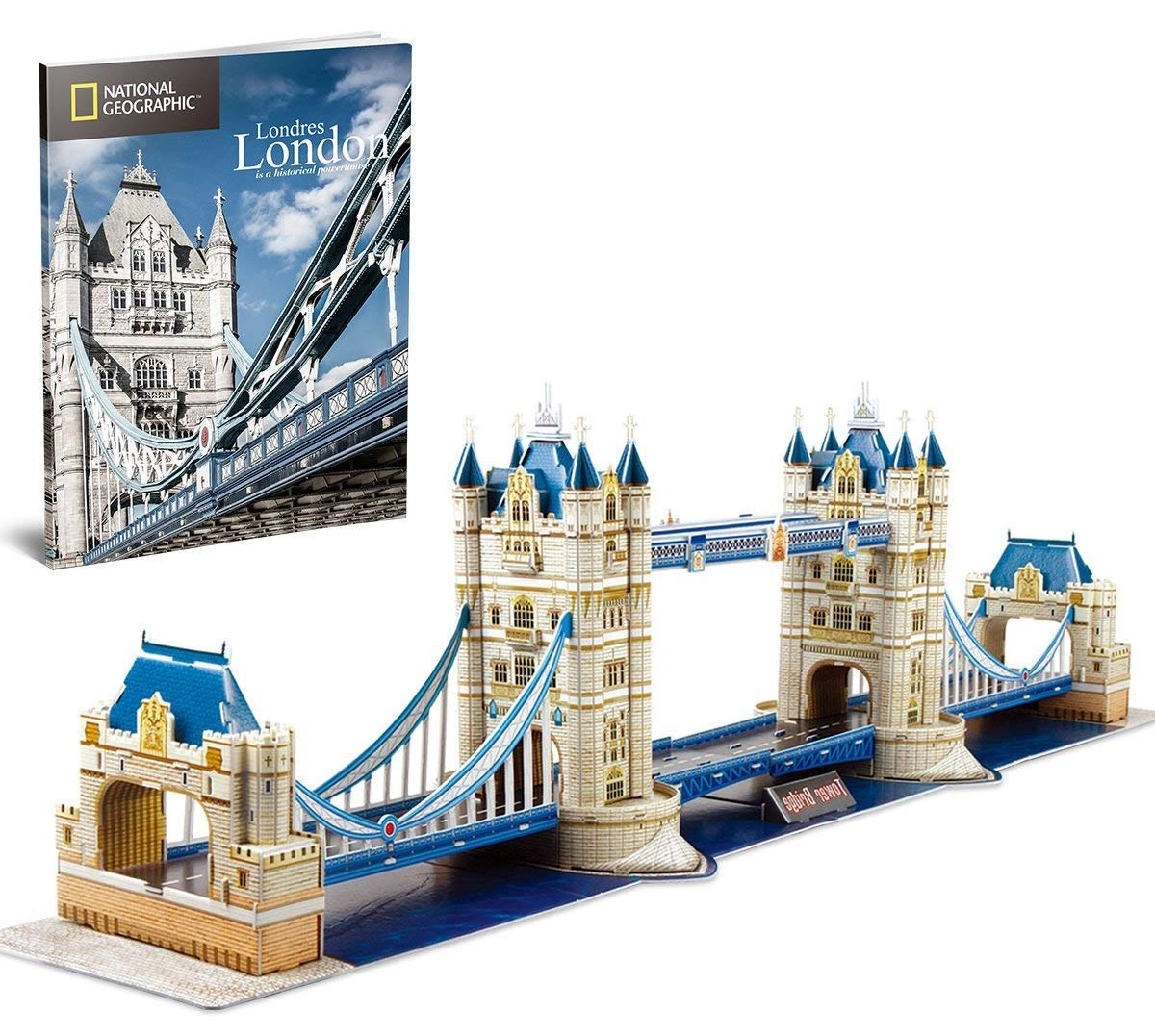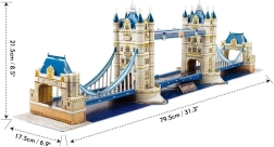 Открийте Лондон чрез сглобяването на един от най-известните му символи – Тауър Бридж. 3D пъзелът от серията National Geographic на CubicFun предлага реалистична изработка, прецизни детайли и приятното изживяване от строителство без необходимост от лепило. Частите от приблизително 3 мм пяна с ламиниран печат осигуряват здравина и красив вид на готовия модел.