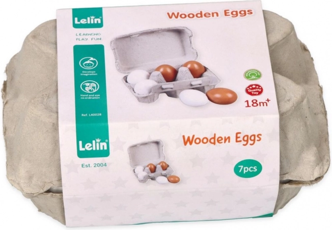 Този комплект дървени яйца е проектиран така, че да позволява на децата да развиват въображението и фините си моторни умения по време на игра. Яйцата са безопасни благодарение на използваните материали, които отговарят на европейските стандарти за безопасност CE.