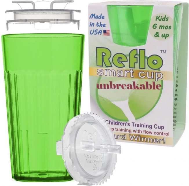REFLO е умна тренировъчна чаша, която помага на децата да усвоят пиенето от отворена чаша без излишен безпорядък. Специалната вложка вътре в чашата осигурява естествен, контролиран поток, благодарение на който детето се учи да пие по правилен начин и едновременно с това се минимизира разливането.