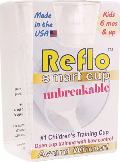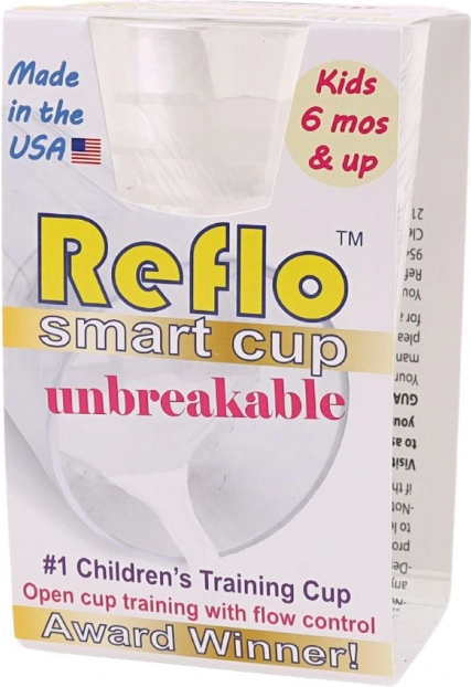 Научете детето си да пие като възрастните – без страх от счупване. Тренировъчната чашка Reflo има добре обмислена вложка, която регулира потока, така че течността изтича постепенно и детето лесно се научава да отпива правилно и без биберони. Прозрачният дизайн позволява контрол на съдържанието, а оребрената форма улеснява държането дори от малки ръчички.